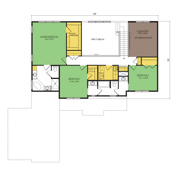 A part of our dream series, the tamarack floor plan features 3 bedrooms and 1.5 bathrooms with a foot print of 44x30 feet and 1342 total square feet of living space.