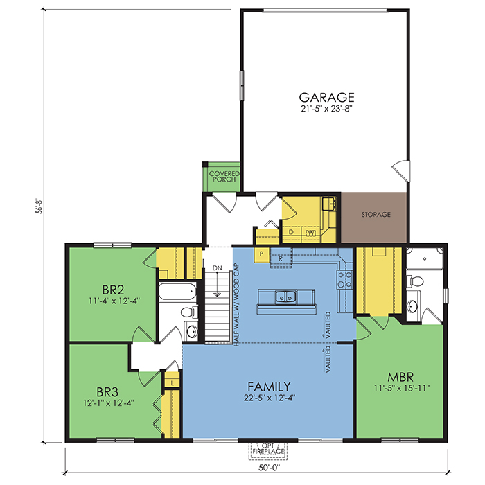 A part of our Wausau Originals, the McIntosh II floor plan features 3 bedrooms and 2 bathrooms with a foot print of 50x56'8" feet and 1420 total square feet of living space. Floor Plan #WO618