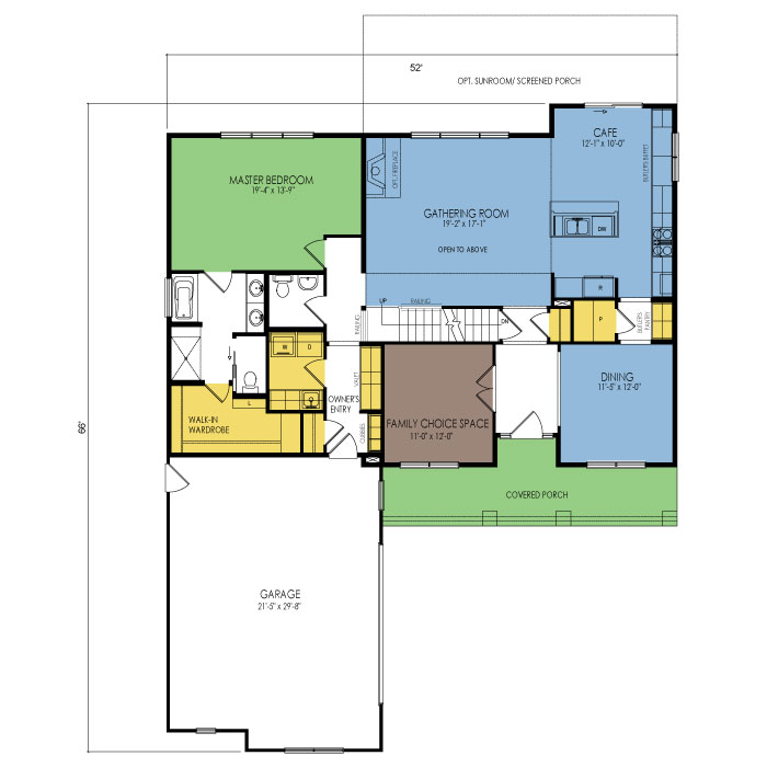 A part of our Designer Series, the Saw Grass floor plan features 4 bedrooms and 3.5 bathrooms with a foot print of 52x66 feet and 2530 total square feet of living space. Floor Plan #DN327
